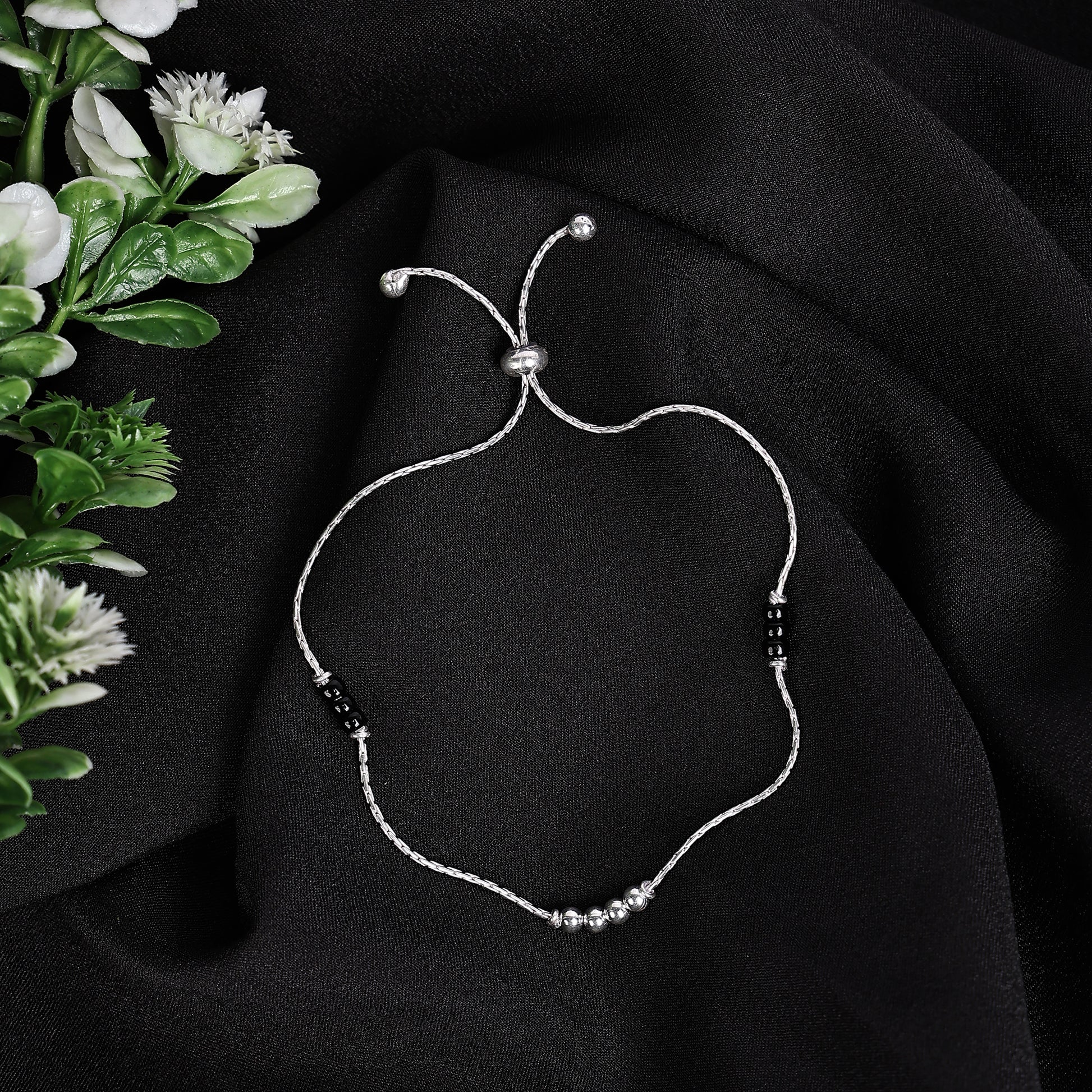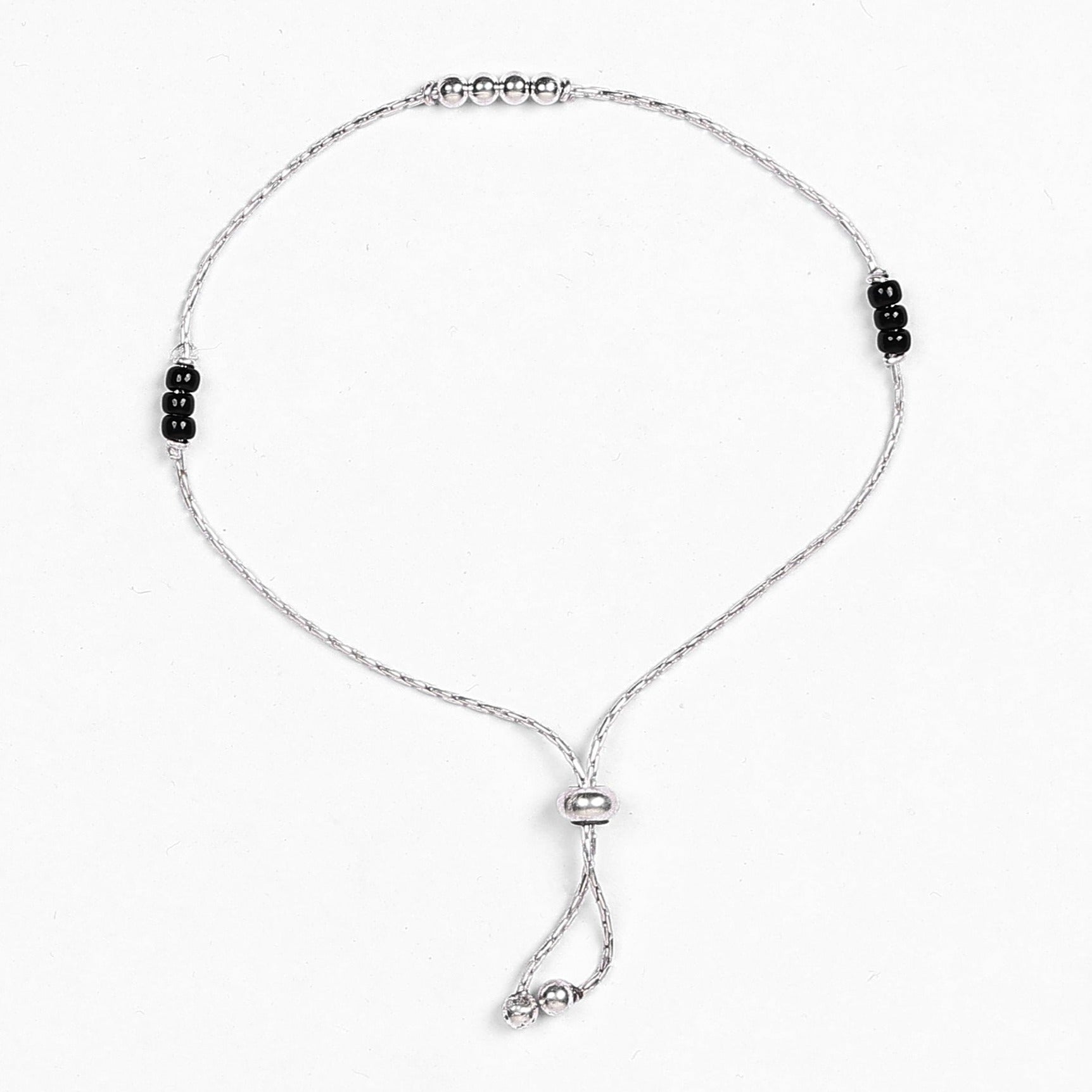 10. Elevate your style with our 92.5 Sterling Silver Adjustable Black Beads Anklets today!