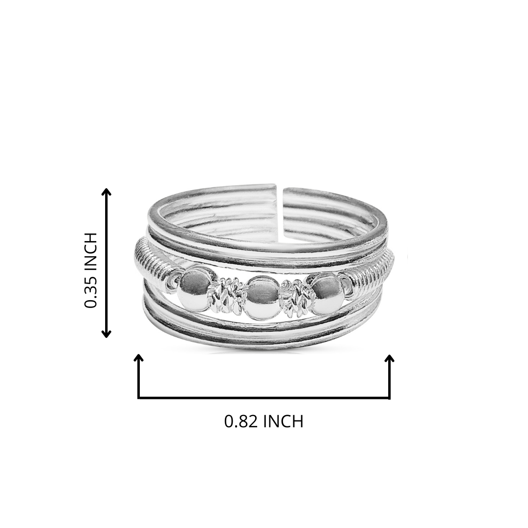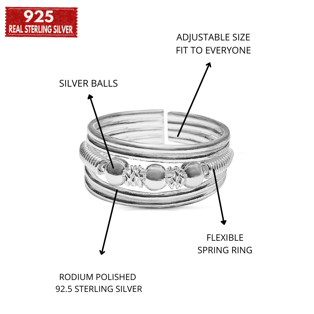 92.5 STERLING SILVER BALLS ADJUSTABLE TOE RING FOR WOMEN