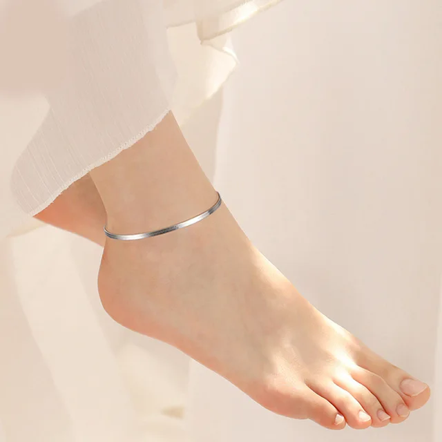 SWASTIKJEWEL.COM, Delicate Minimalist Style Sterling Silver 92.5 Flat Chain Anklet