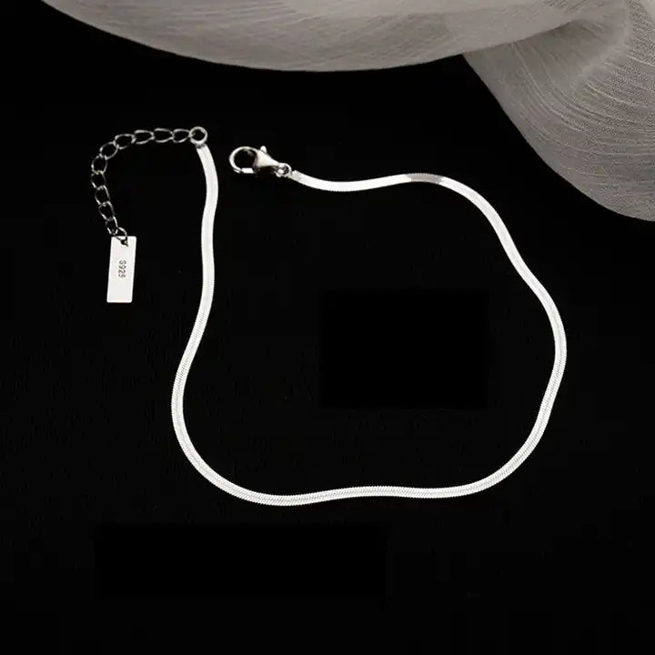 Product Name: Delicate Minimalist Style Sterling Silver 92.5 Flat Chain Anklet