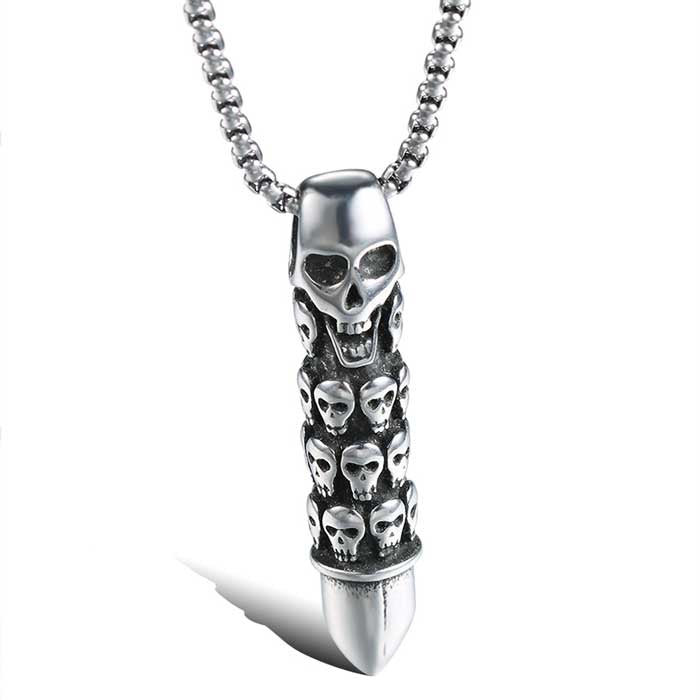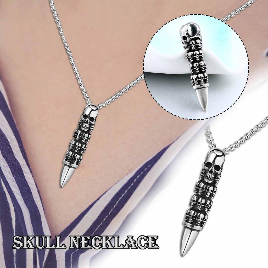 Ghost Head Bullet Skull Chain Pendent Punk Men's Jewelry