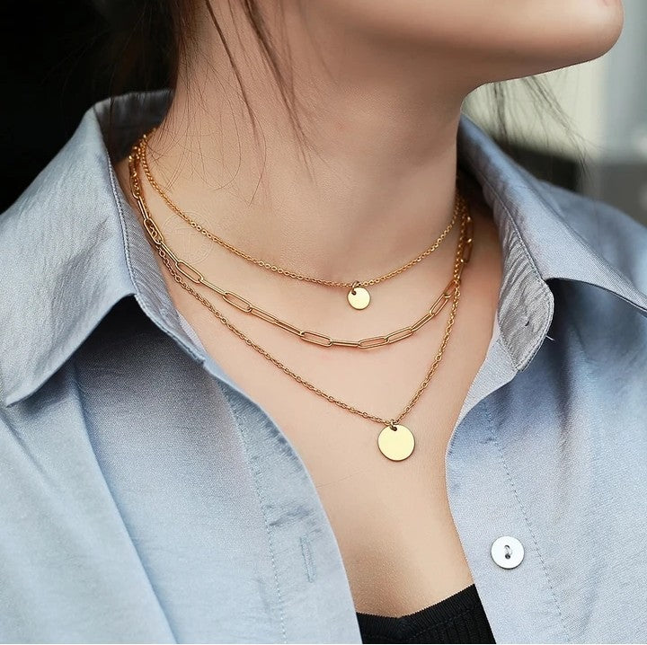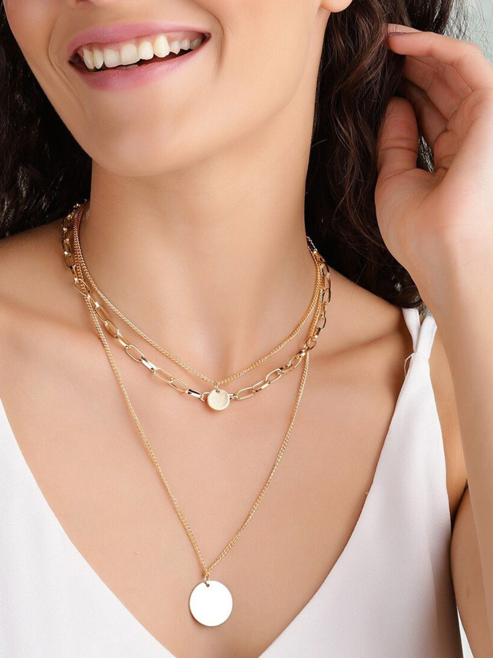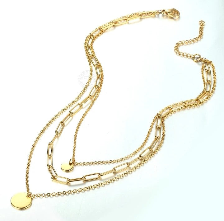 GORGEOUS MULTI LAYERED TRIPLE STRAND PENDENT NECKLACE