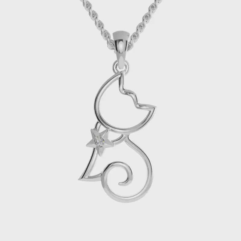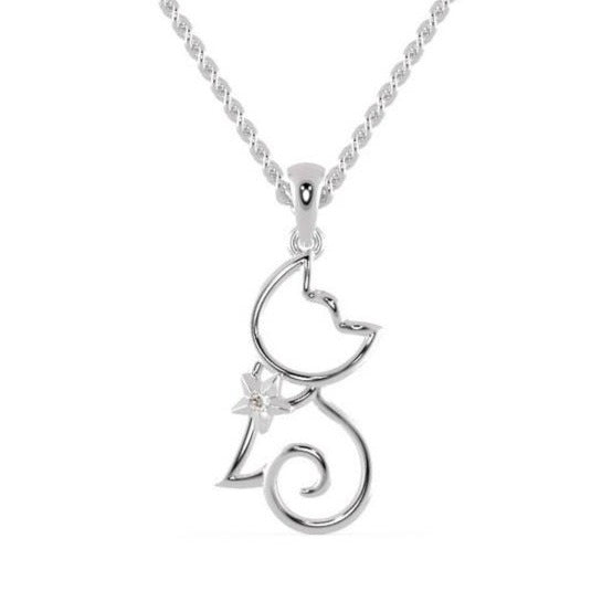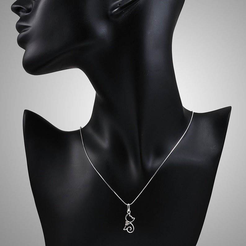New Arrival 92.5 Sterling Silver Cubic Zerconia Cute Animal Cat Pendant Necklace