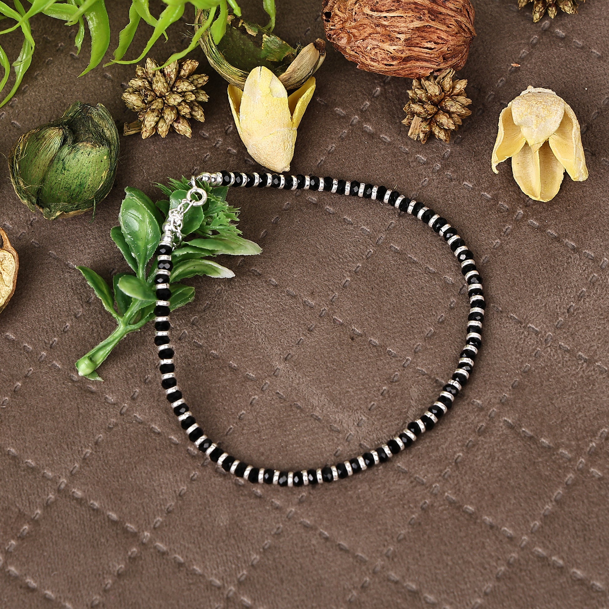 This Silver Black Bead Anklet has been handcrafted with love, especially for ladies! Classic black beads are nestled on a sterling silver chain, making this anklet truly unique. The blend of black and silver is truly a class apart!