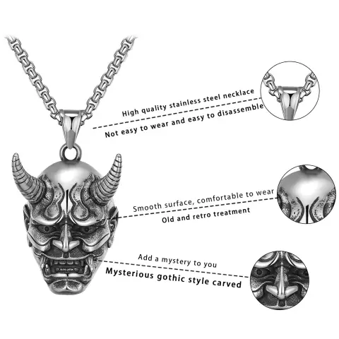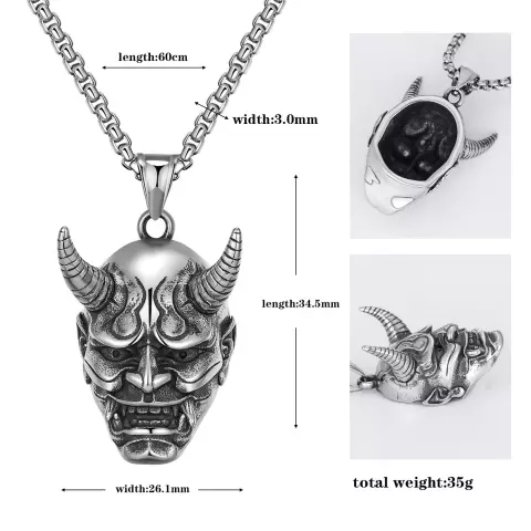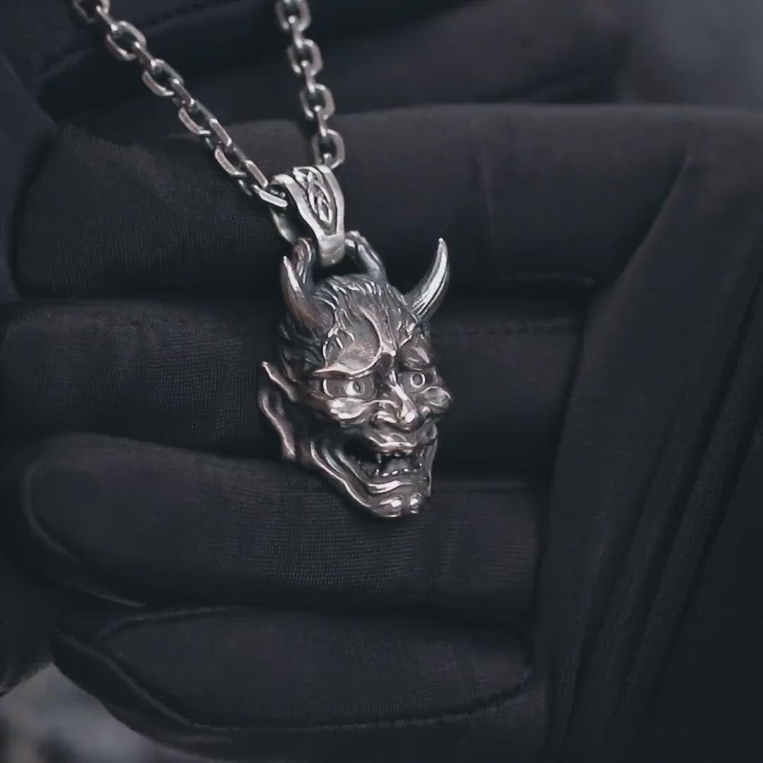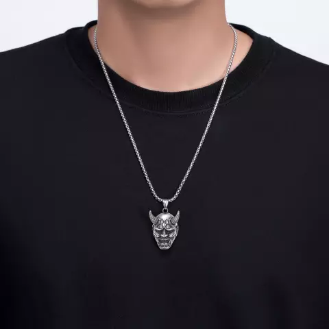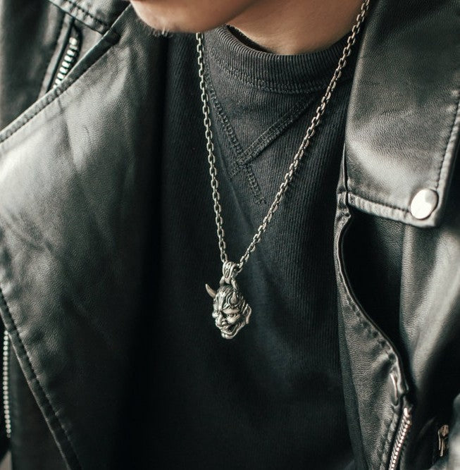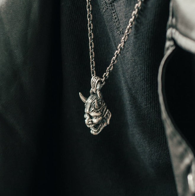 SILVER OXIDISED HANNYA FACE NECKLACE CHAIN PENDENT FOR MEN