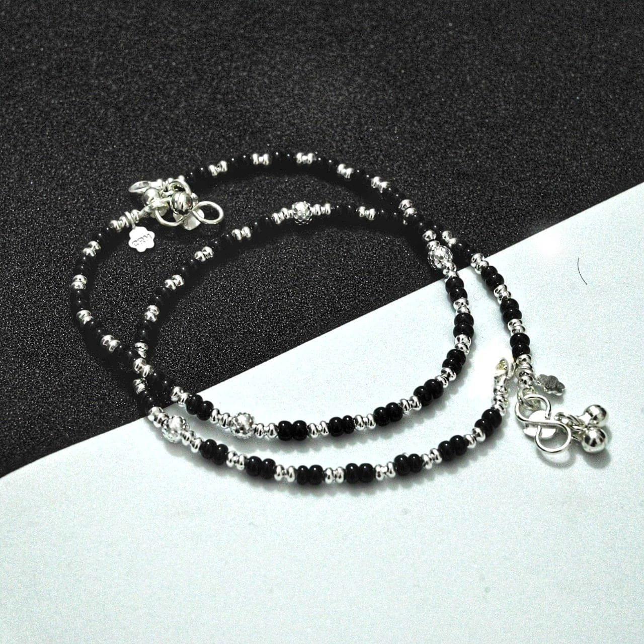 This Silver Black Bead Anklet has been handcrafted with love, especially for ladies! Classic black beads are nestled on a sterling silver chain, making this anklet truly unique. The blend of black and silver is truly a class apart!