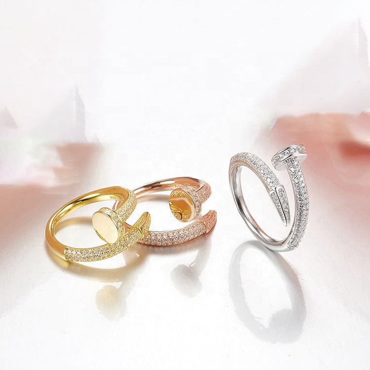 2021 Jewelry Fashion 925 Sterling Silver CZ Stone Nail Ring Jewlery Women Men
