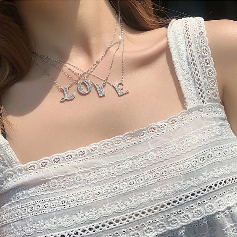 S925 Sterling Silver Cubic Zirconia 26 Initial Letters Alphabet Pendant Necklace Personalized Charm Letter L O V E Necklace