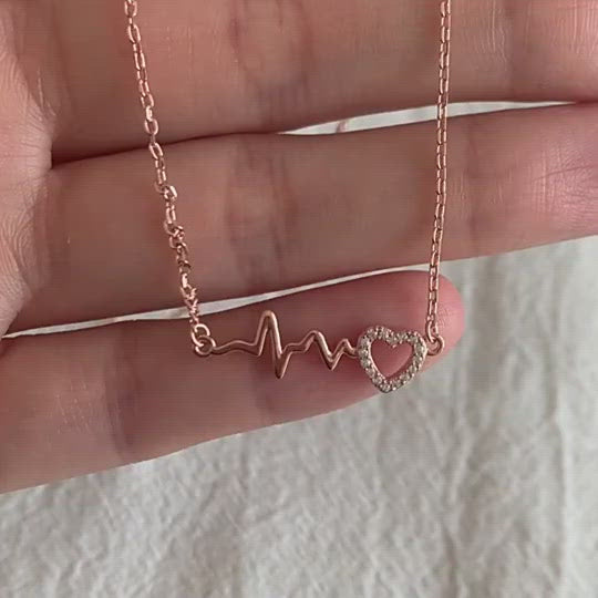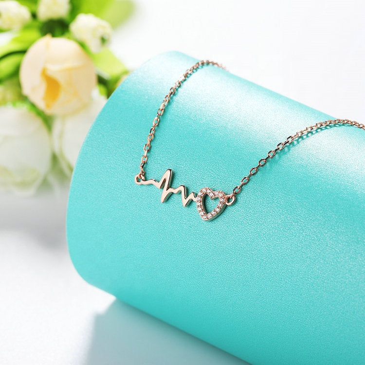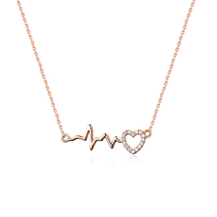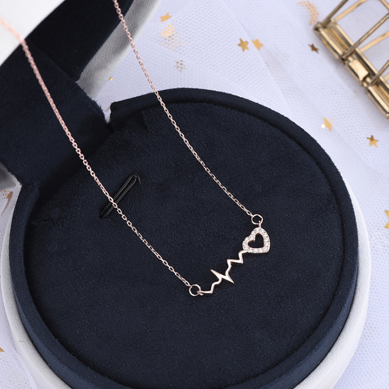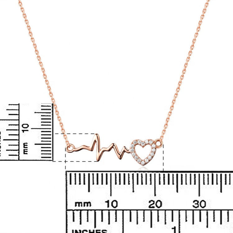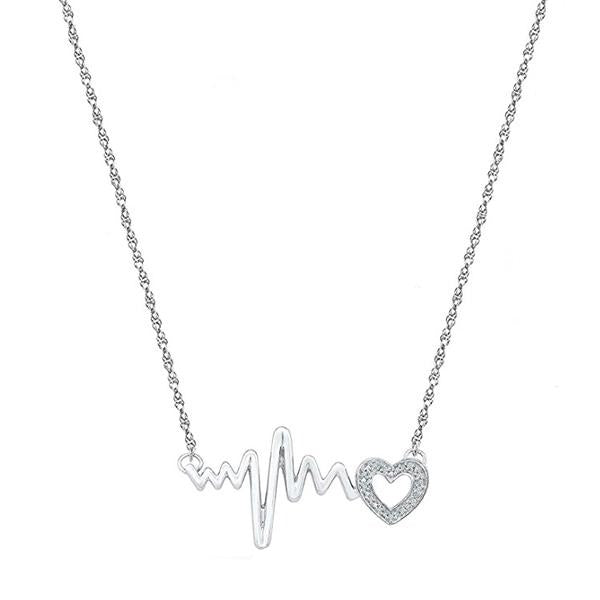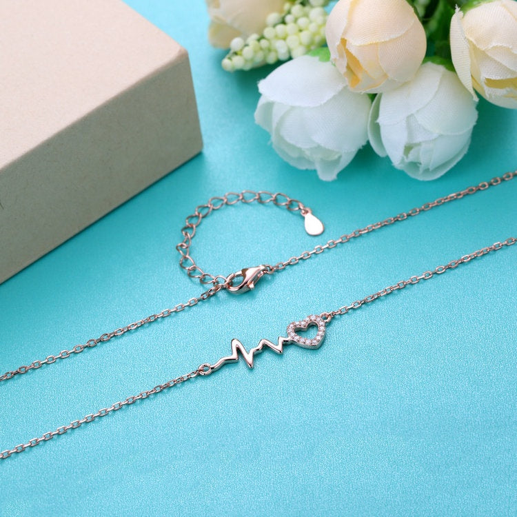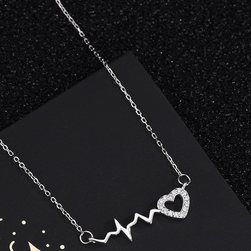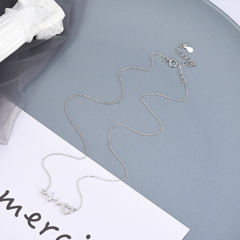 925 Sterling Sliver Shiny Diamond Heartbeat Necklace